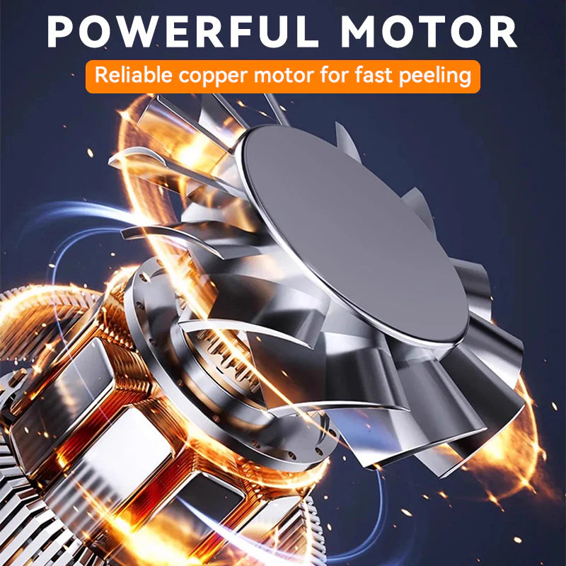 FEATURES: POWERFUL COPPER WIRE MOTOR – Equipped with a high-performance copper wire motor, this electric peeler ensures efficient and fast peeling of various fruits and vegetables. The motor delivers consistent power, allowing even small fruits to be peeled effortlessly without stalling or losing performance. Its durability and reliability make it a time-saving addition to any kitchen.